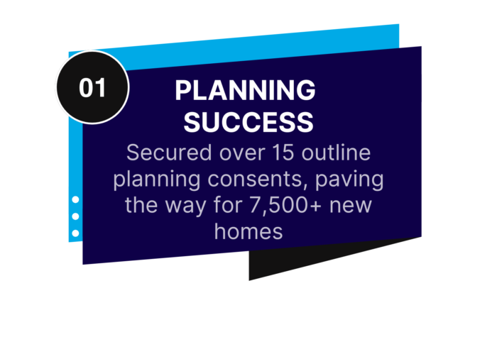 Planning Success: Secured over 15 outline planning consents, enabling 7,500+ new homes