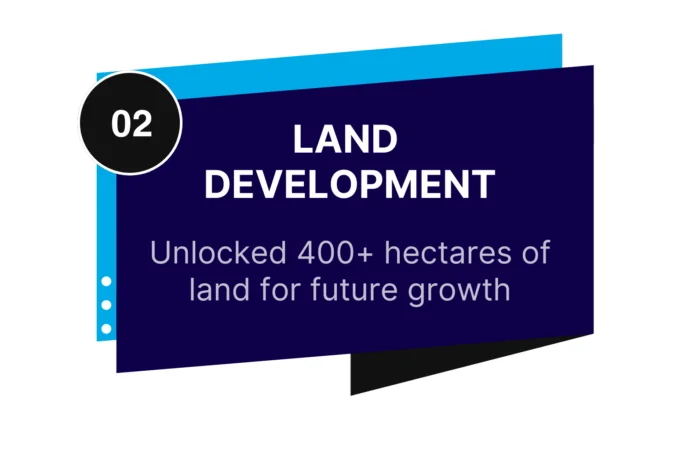 2. Land Development: Unlocked 400+ hectares of land for future growth.