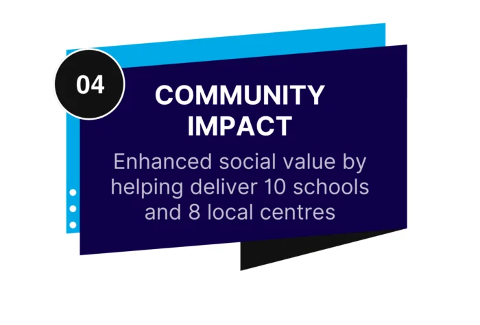 4. Community Impact: Enhanced social value by helping deliver 10 schools and 8 local centres.