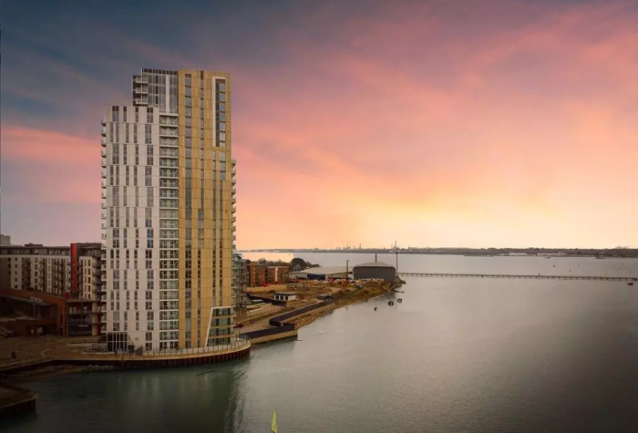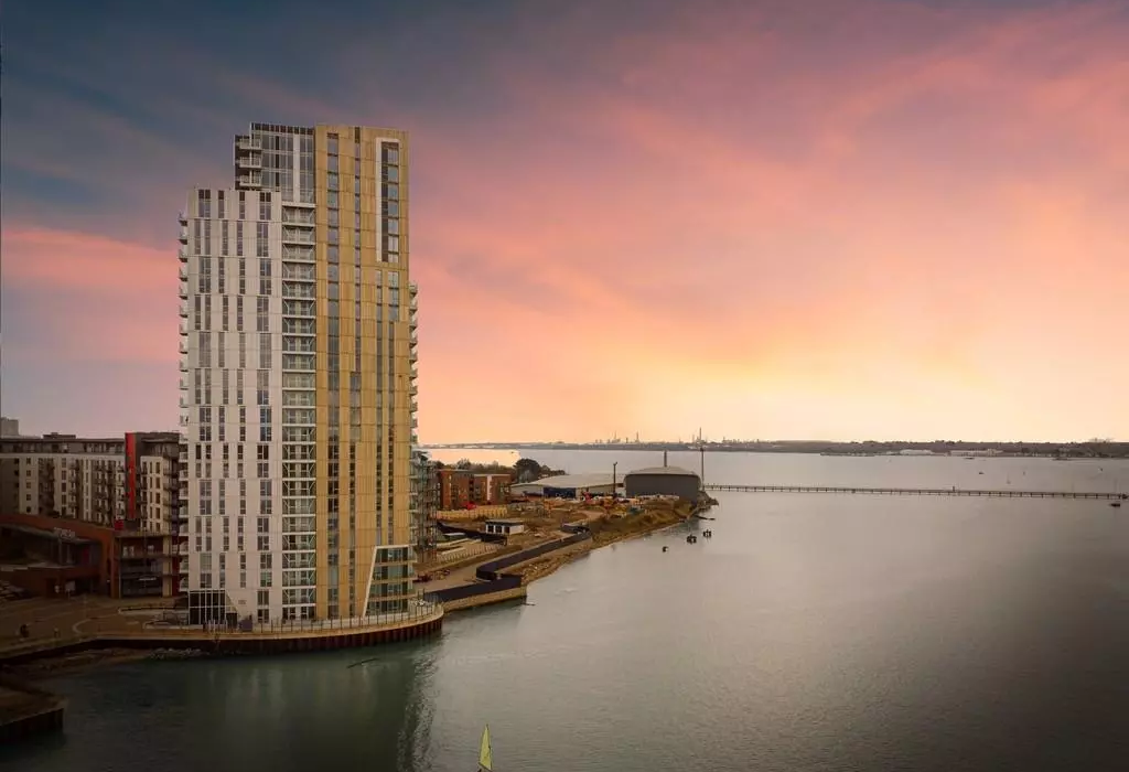 Phase 4B – 27-storey concrete-framed tower constructed from a new promontory extending into the river basin, forming a landmark on the Southampton skyline.
