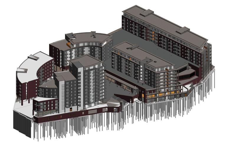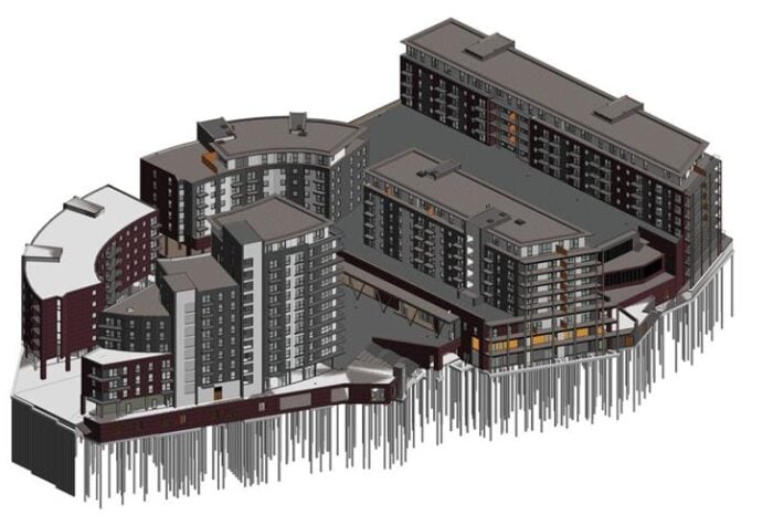 The development incorporates a broad range of structural typologies, requiring coordinated design across multiple phases. These include reinforced concrete apartment buildings, lightweight steel-framed residential structures, podium decks over underground car parks, multi-storey car park structures, load-bearing masonry apartment blocks and a 27-storey reinforced concrete tower built from a newly formed promontory.