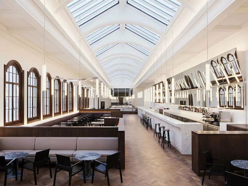 - We were appointed to undertake two schemes as part of the V&A’s ongoing restoration and regeneration scheme called Future Plan. Our responsibilities included the design of a prestigious new Members’ Lounge, comprising an informal private lounge and dining space for the museum’s membership. The new members room occupies space previously given to staff offices, which we relocated to adjacent space.