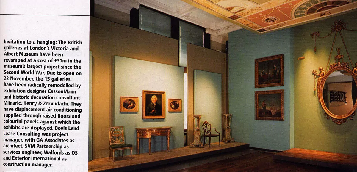 - The refurbishment of the British Galleries was one of the largest projects undertaken by the V&A. Fifteen galleries in an area of about 48,438 ft2 house approximately 3000 exceptional pieces of decorative and fine art. Room 52 of the British Galleries contains the ornate panelling from the Music Room and the doorways from the Great Room of Norfolk House. This required a particularly sensitive approach, and our engineers responded with detailed designs routing the services and integrating the finishes for complete concealment.